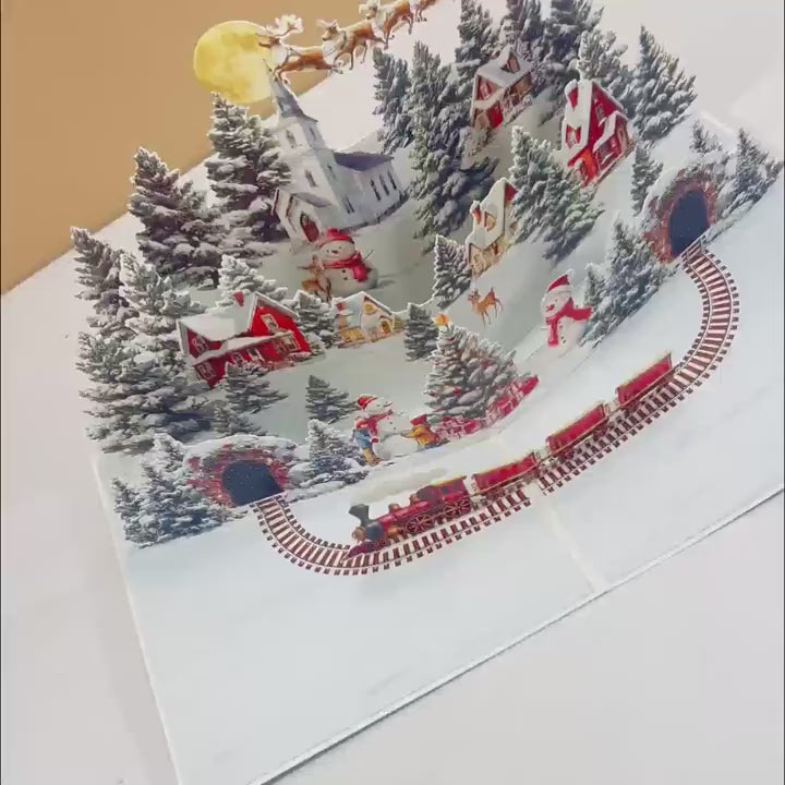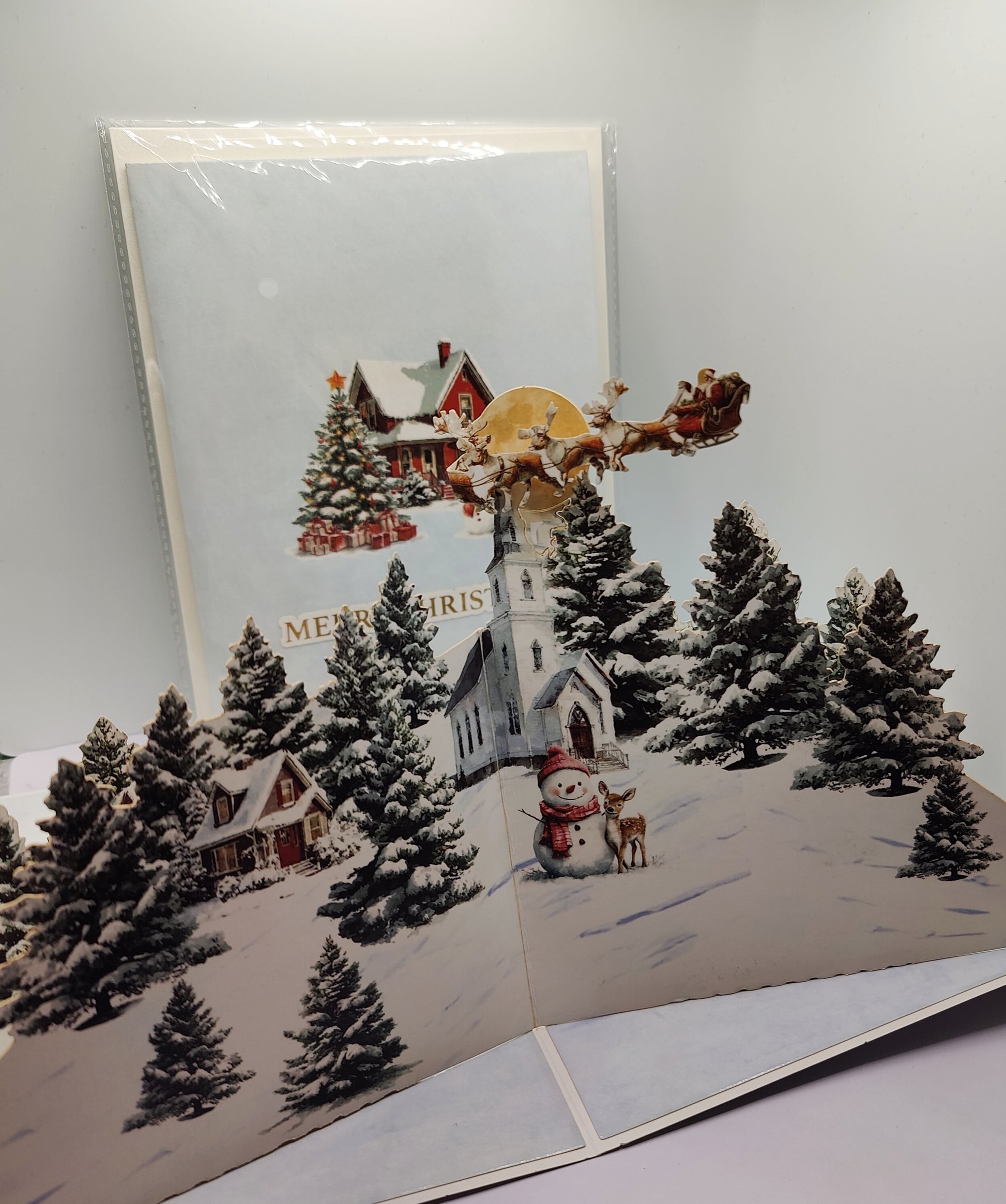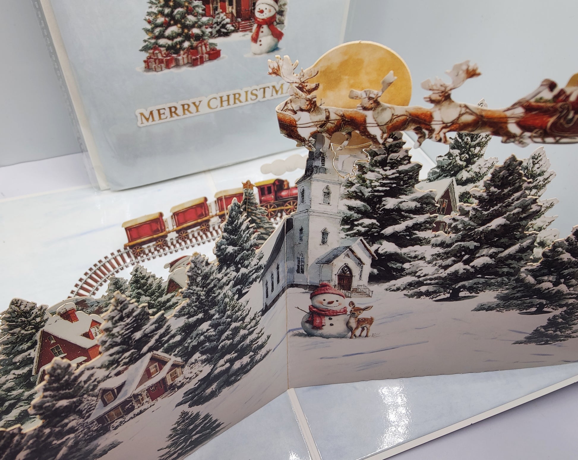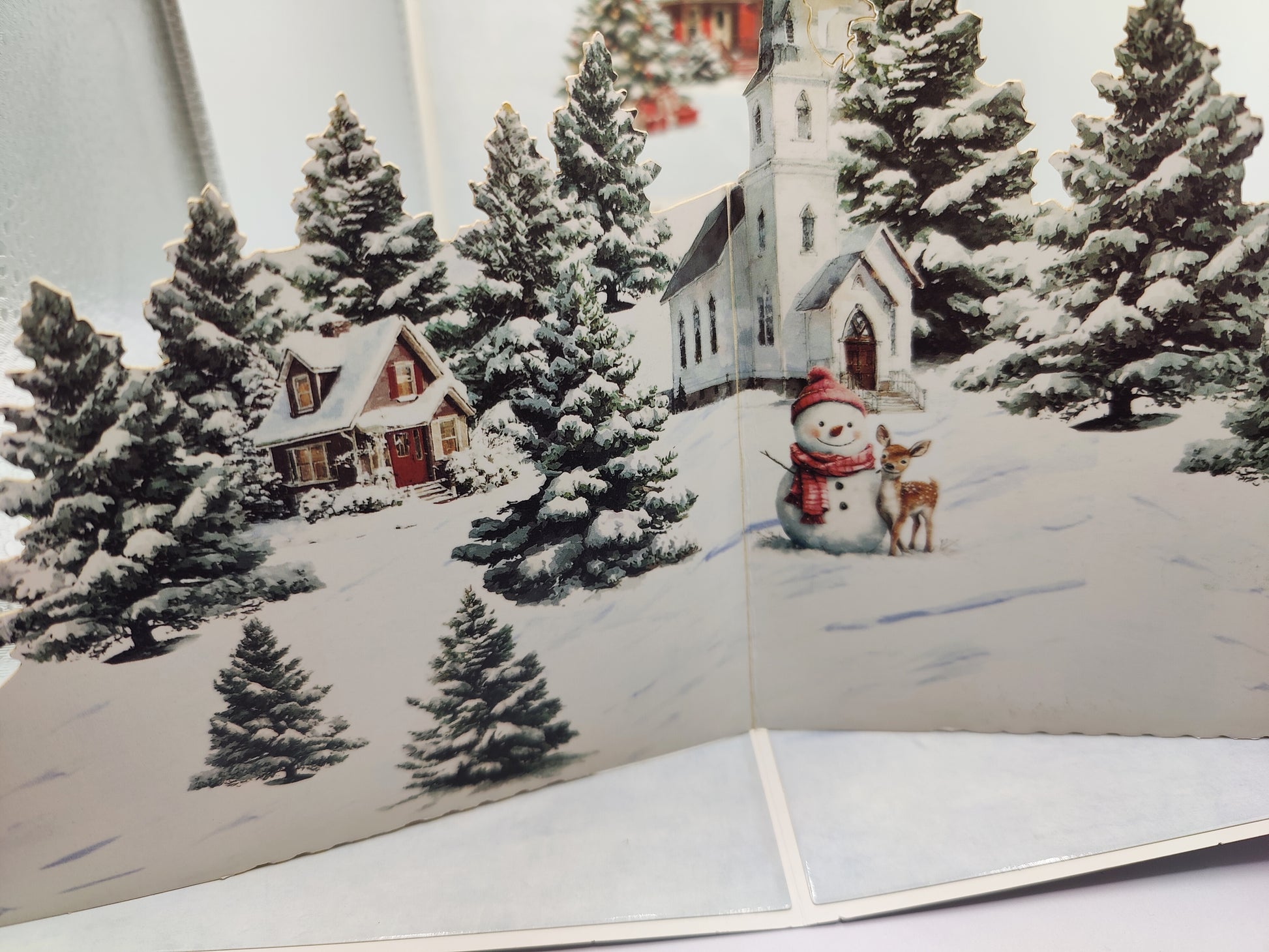 Beautiful 3D Pop Up Christmas Card of a Snowy Village