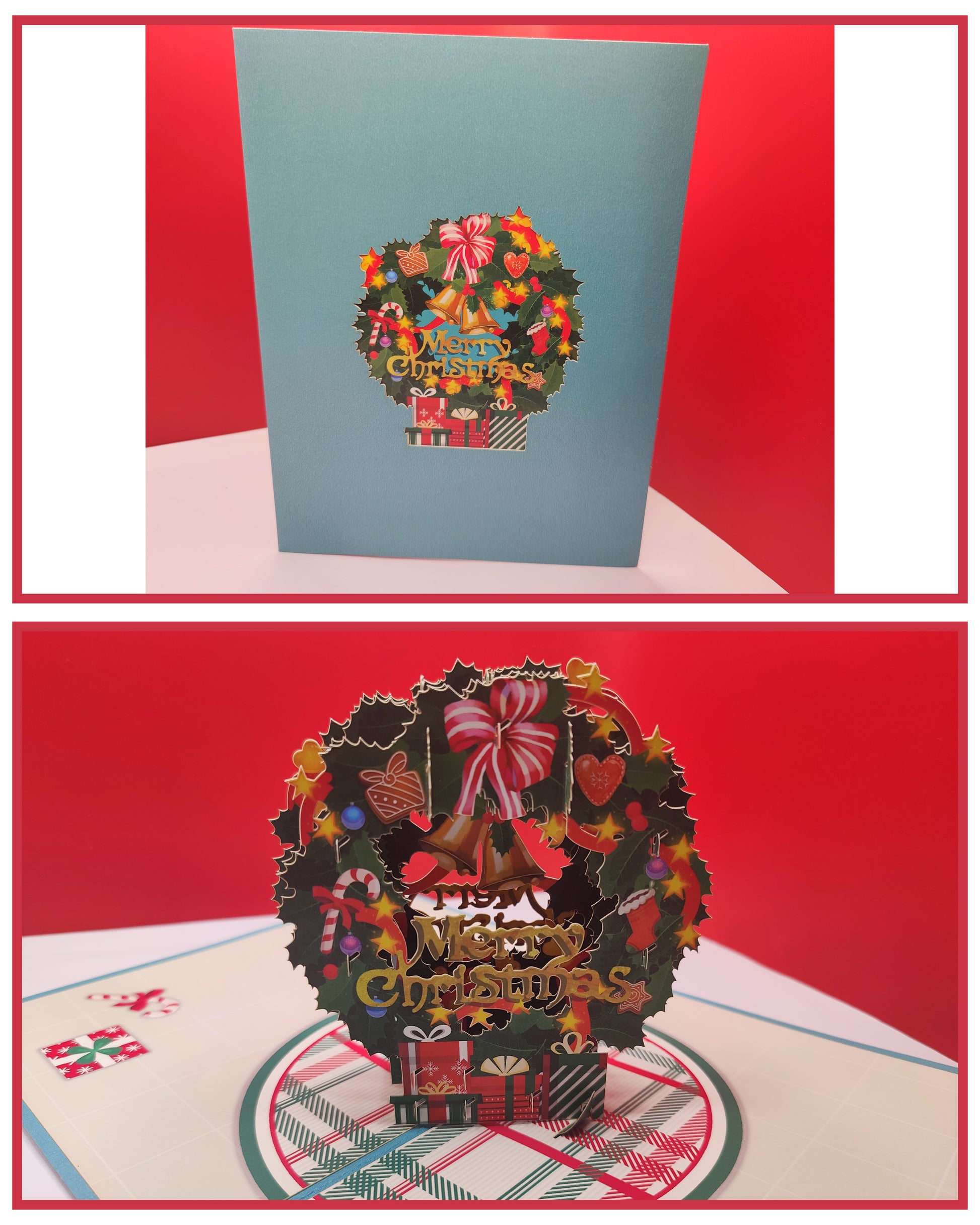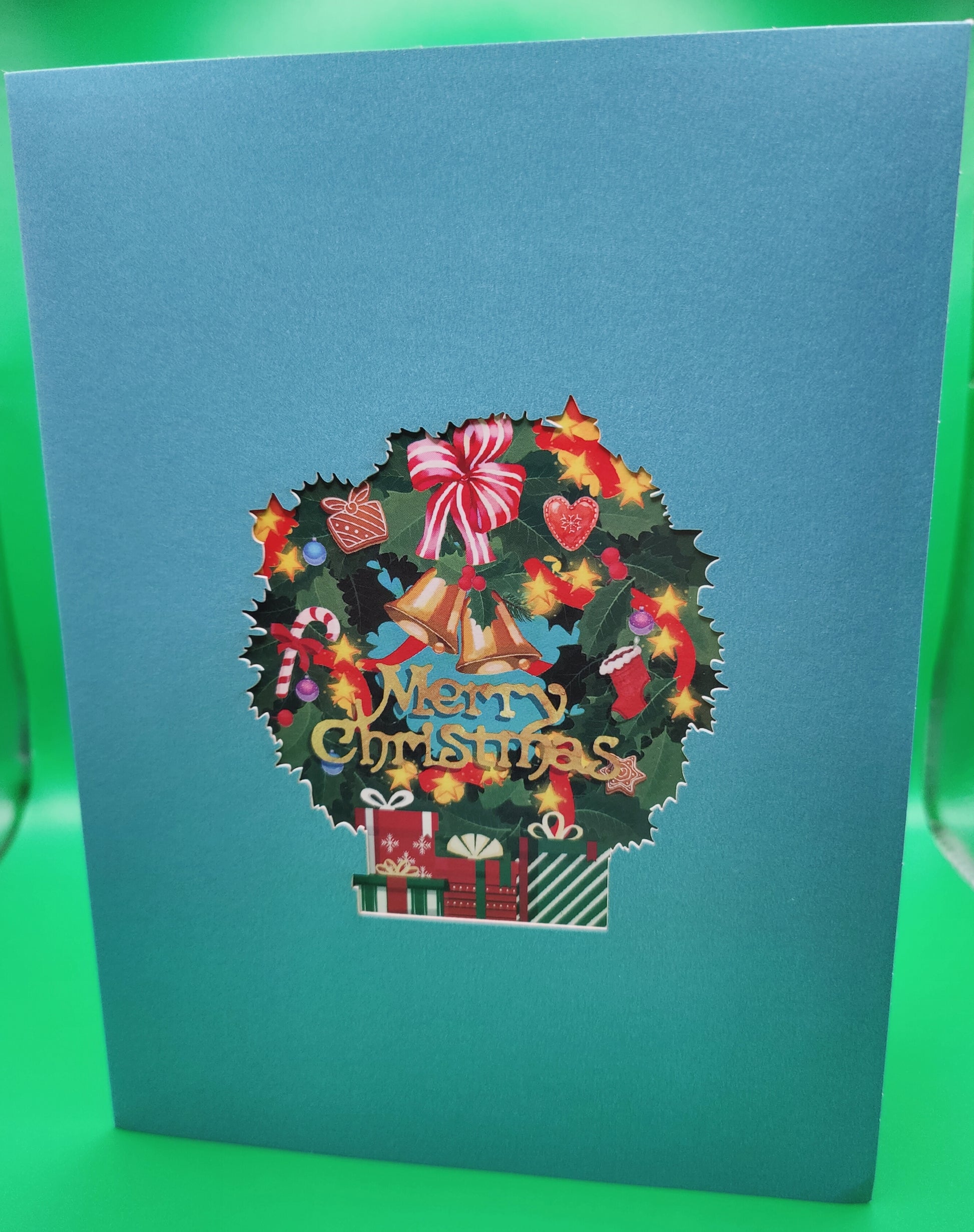 Beautifully Crafted Christmas Wreath Pop Up Christmas Greeting Card
