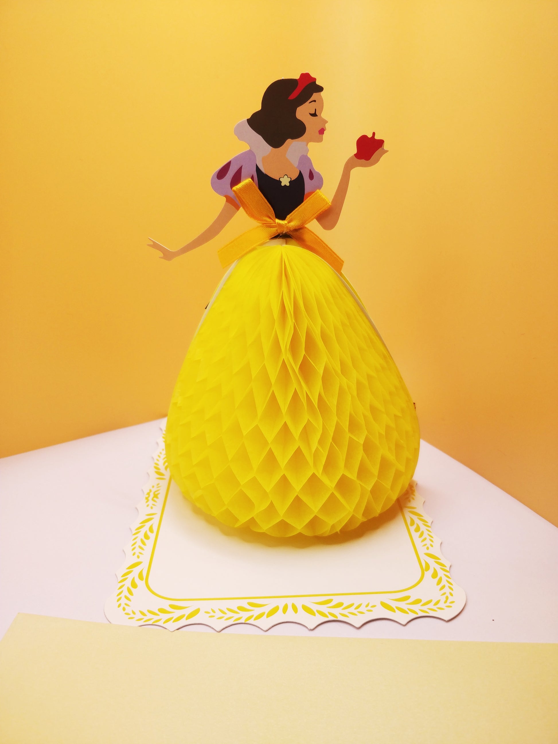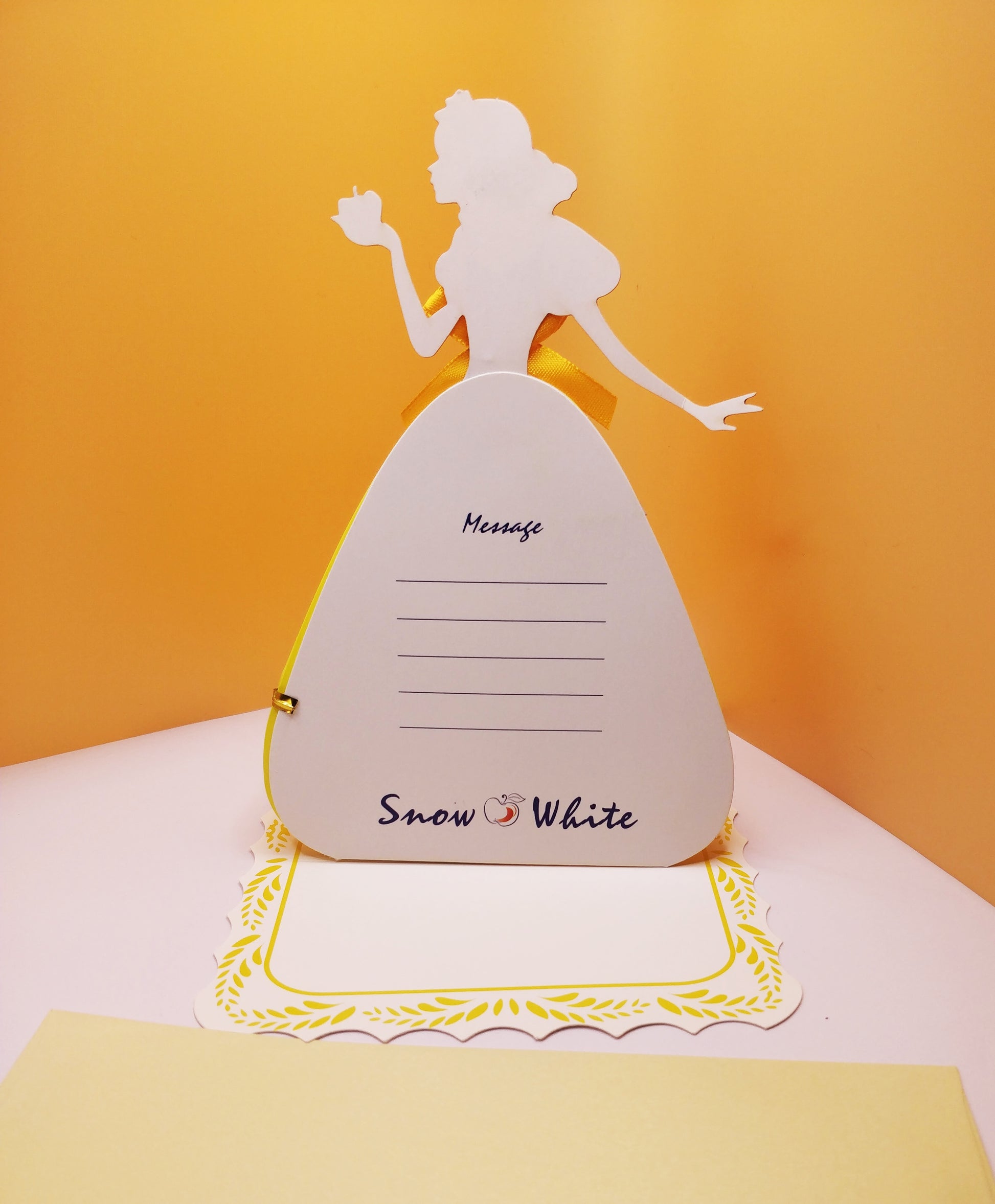 This is a really special card. A beautifully handcrafted Snow White 3D Pop Up card with detailed dress design . It's a lovely keepsake for a special Princess in your life.