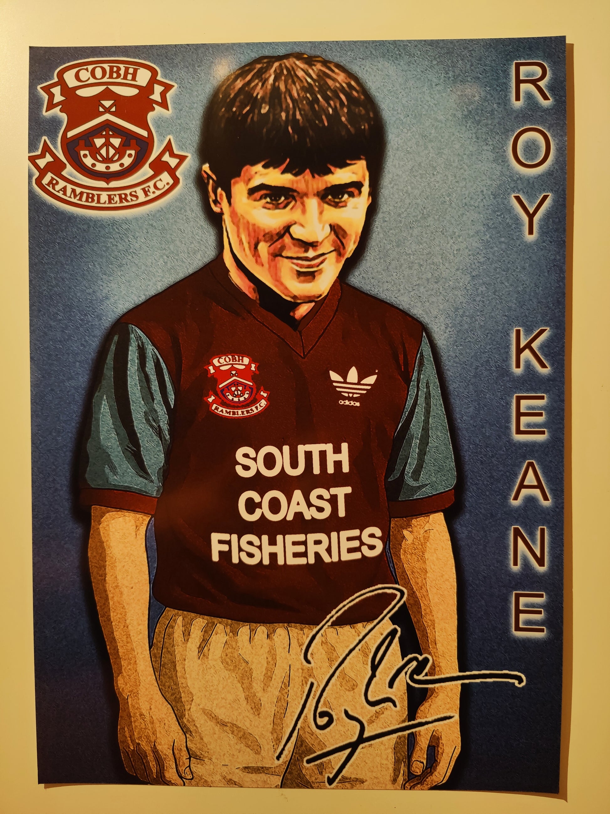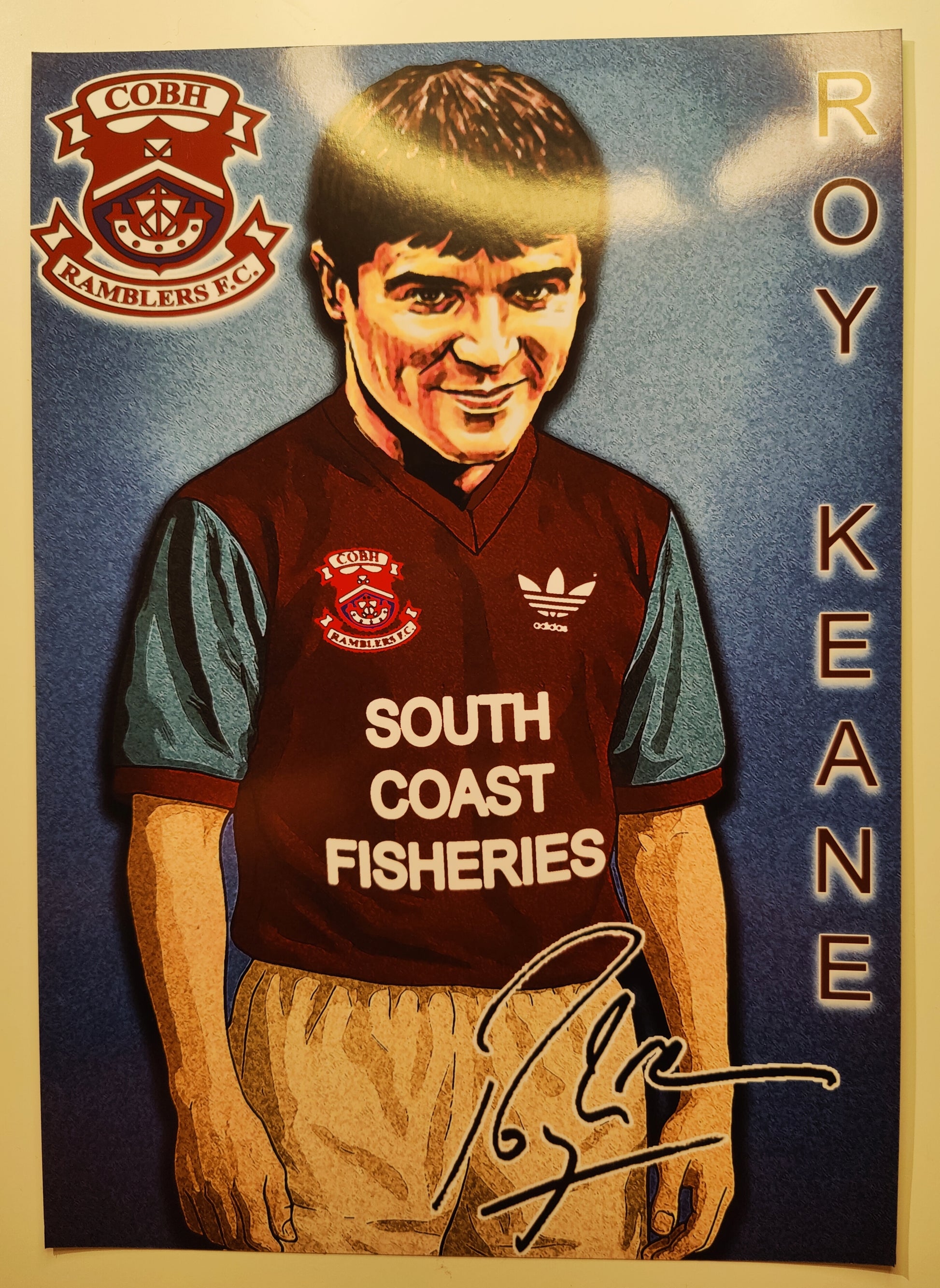 Roy Keane High Quality Art Print of his Cobh Ramblers Playing Days with a print copy of his autograph